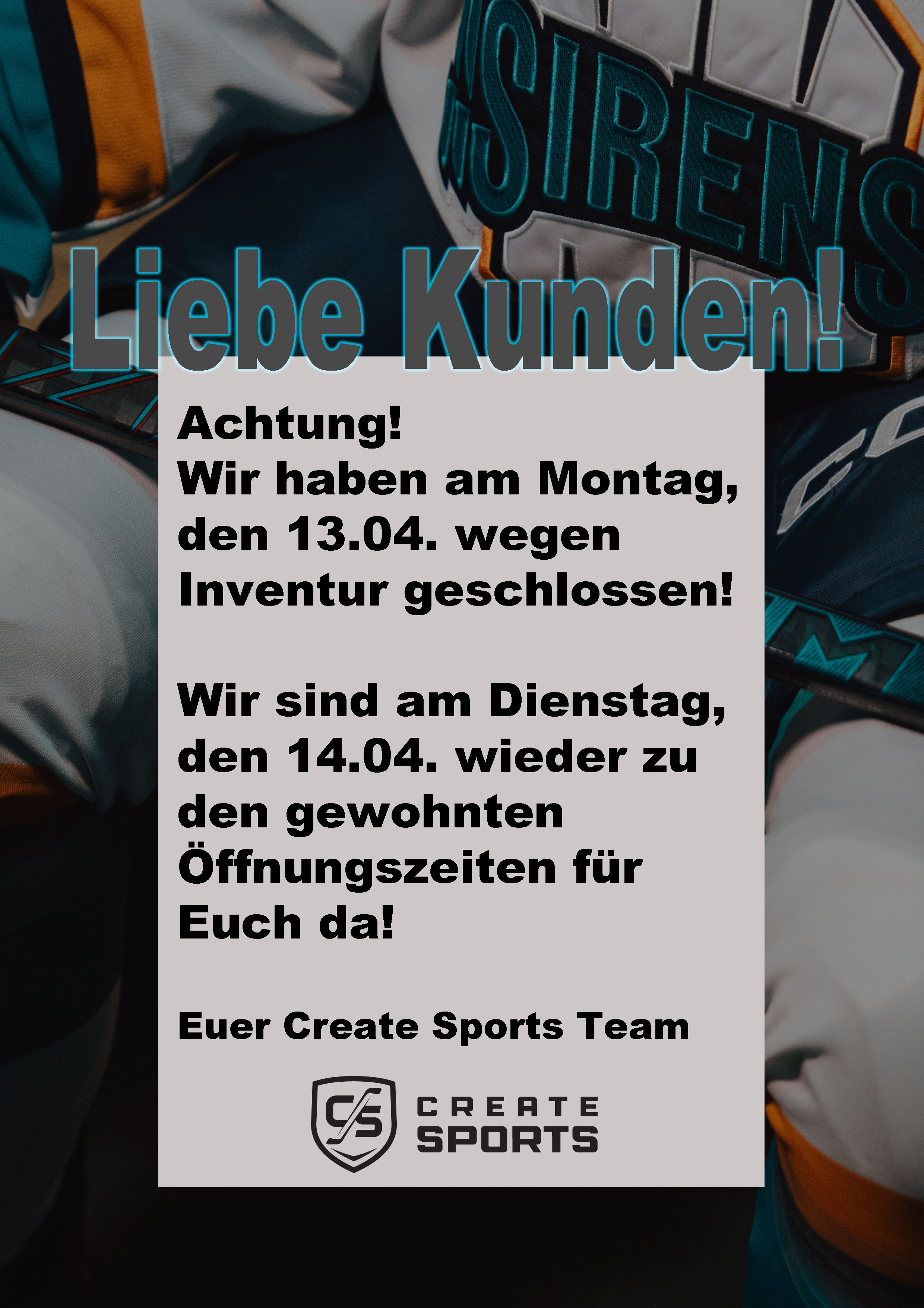 Dann schreib uns eine Email an online@create-sports.com